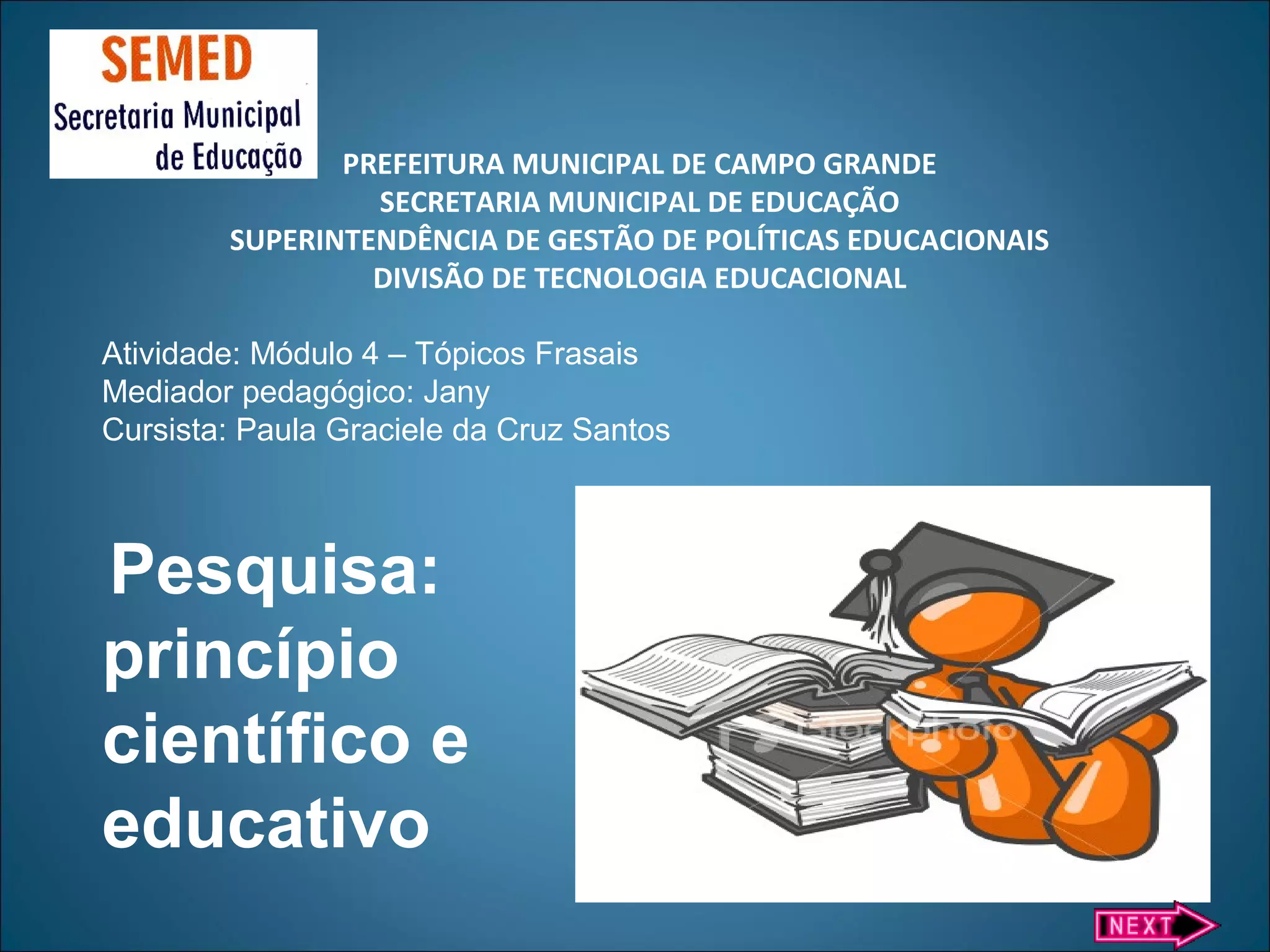 A pesquisa é um princípio essencial na educação por permitir o surgimento de novos conceitos e saberes. Os professores devem incentivar a pesquisa, primeiro realizando pesquisas próprias e depois orientando os alunos. A pesquisa motiva os alunos a pensar criticamente e produzir conhecimento de forma autônoma, ao contrário da mera reprodução. É importante repensar a forma de ensinar para dar mais ênfase à pesquisa dos alunos.