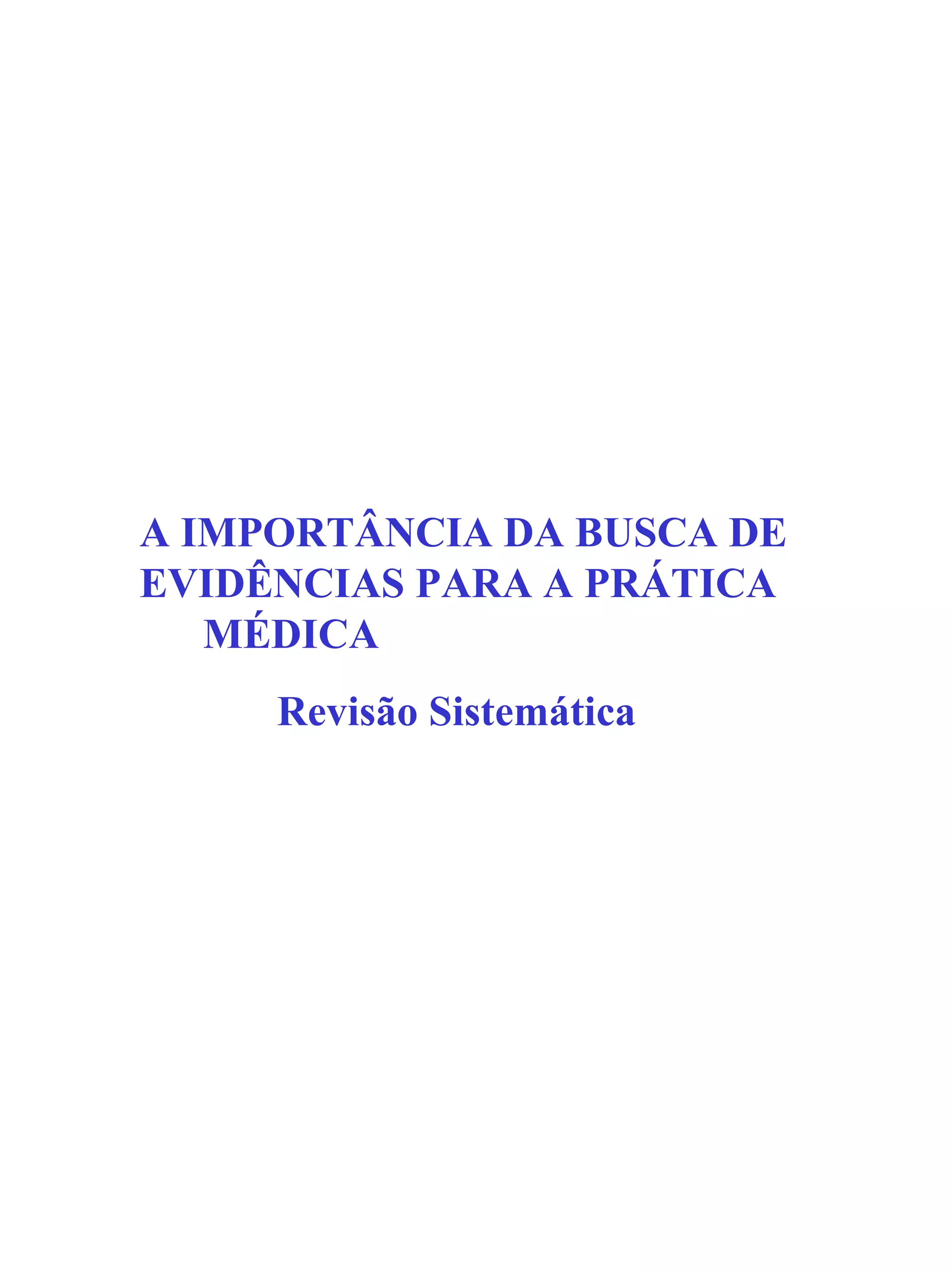 1) O documento discute a importância da busca de evidências para a prática médica através de revisões sistemáticas e meta-análises.