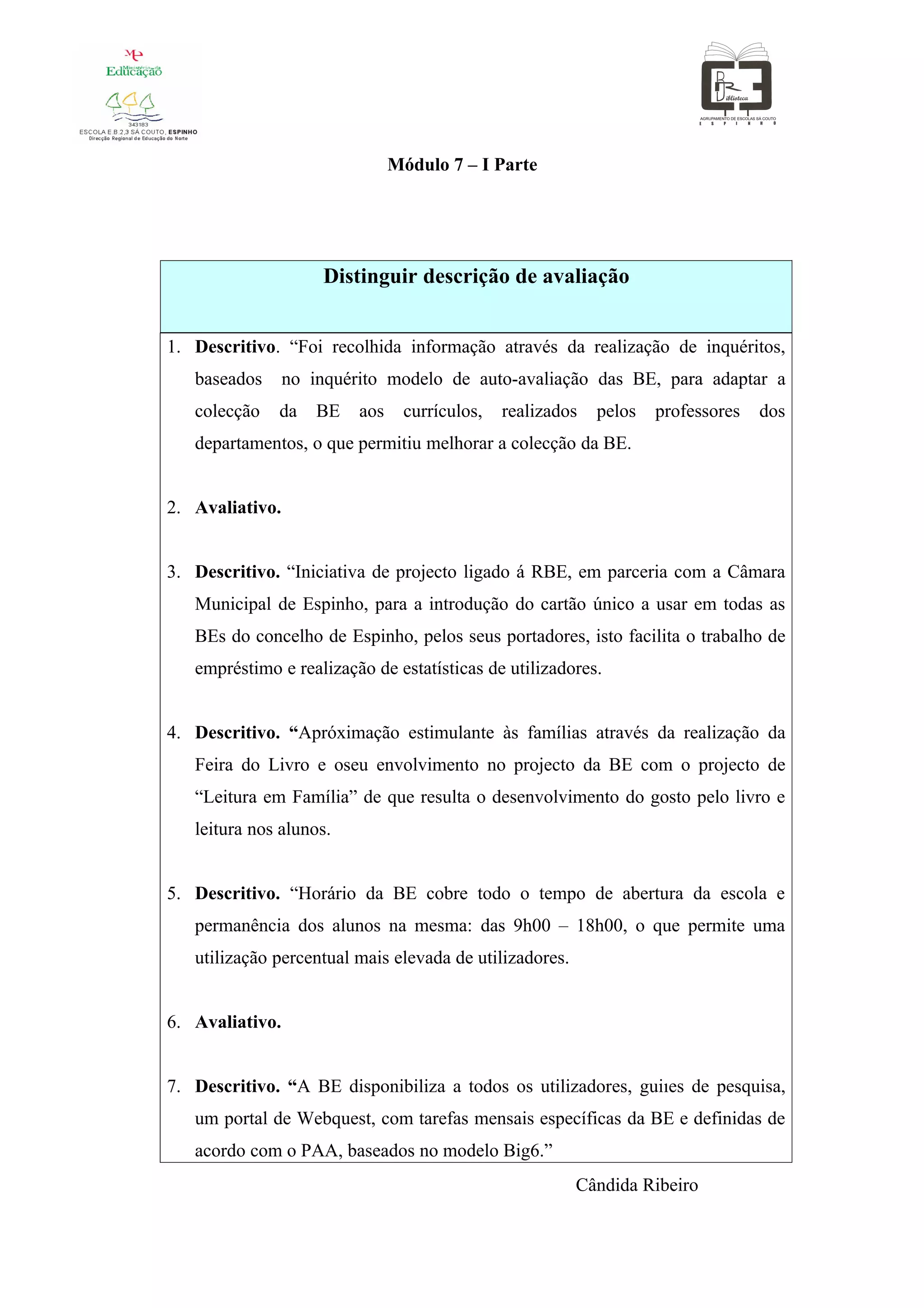 O documento descreve várias iniciativas de uma biblioteca escolar para melhorar seus serviços, incluindo a realização de inquéritos para adaptar sua coleção aos currículos, a introdução de um cartão único para empréstimos, e eventos como a Feira do Livro para envolver as famílias e estimular o gosto pela leitura entre os alunos. A biblioteca também estendeu seu horário de funcionamento para permitir maior utilização.