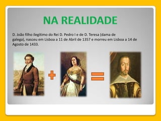 1) D. João de Portugal foi dado como morto na Batalha de Alcácer Quibir, mas regressa a Portugal 20 anos depois, agora como um "Romeiro".
