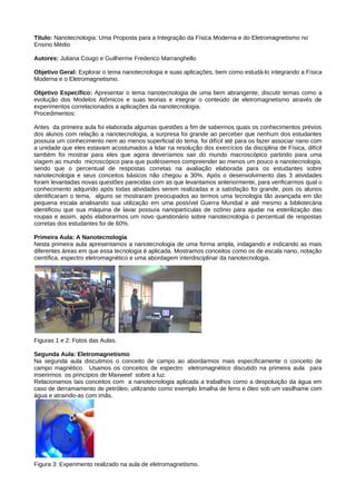 1) O documento propõe integrar o ensino de nanotecnologia com física moderna e eletromagnetismo no ensino médio.