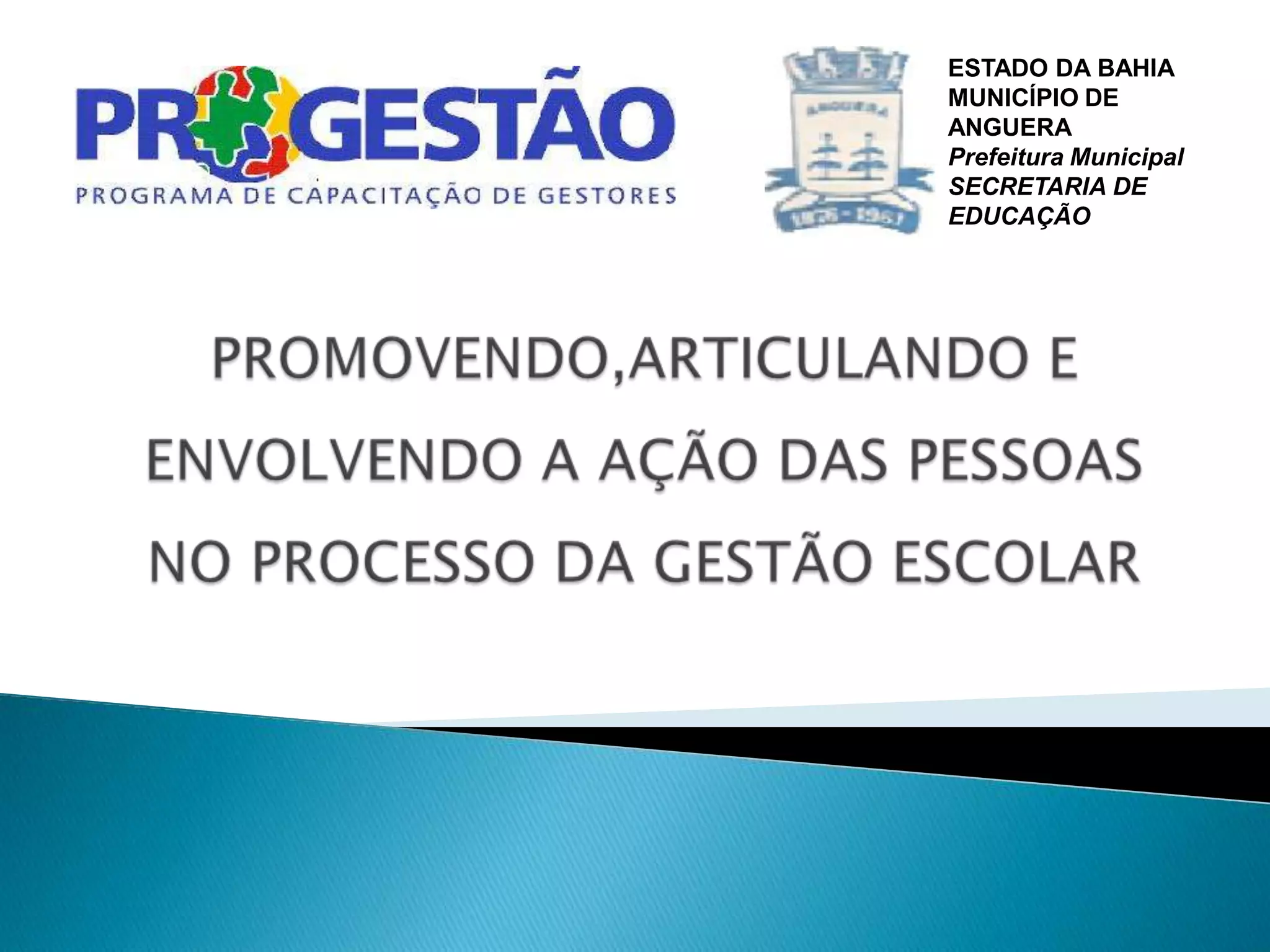 O documento discute a importância da gestão democrática nas escolas, envolvendo a participação de pais, alunos e a comunidade. Uma pesquisa mostrou que esses grupos ainda estão pouco envolvidos nas atividades da escola e desconhecem o Conselho Escolar. O projeto "Escola Sem Muralha" visa motivar professores e melhorar a interação entre a escola e a comunidade por meio de palestras, oficinas e eventos culturais.
