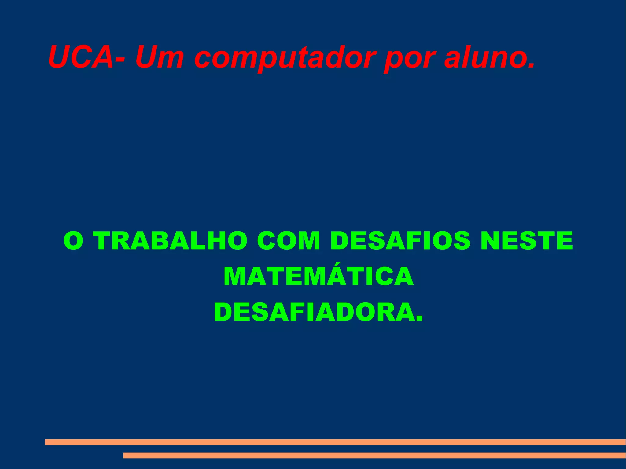 O documento discute desafios matemáticos e como eles podem estimular o crescimento escolar dos alunos. Ele lista alguns sites que fornecem desafios matemáticos online e encoraja os professores a usarem desafios para tornar suas aulas mais interessantes.