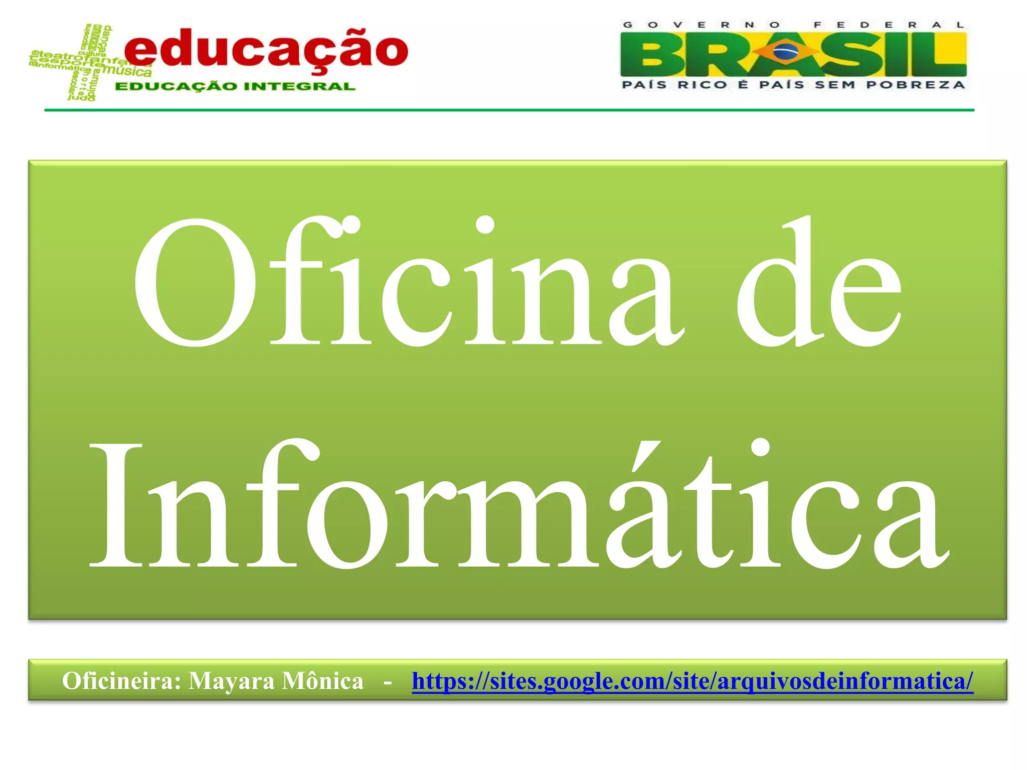 Oficineira: Mayara Mônica - https://sites.google.com/site/arquivosdeinformatica/
