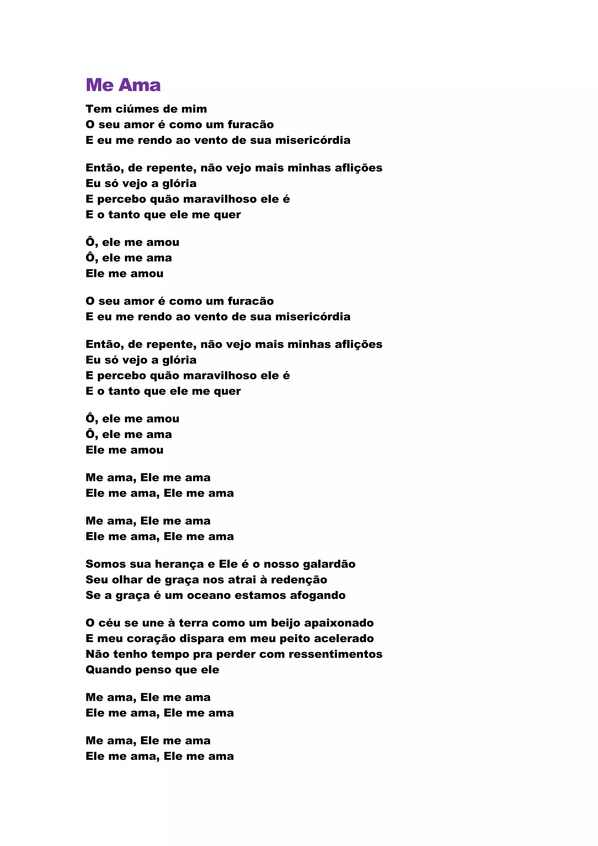 O documento descreve o amor de Deus como um furacão que leva a pessoa a ver apenas a glória divina, esquecendo as aflições. A graça de Deus atrai a redenção, e o céu e a terra se unem em um beijo apaixonado, fazendo o coração acelerar ao pensar no amor que Deus tem pela pessoa.