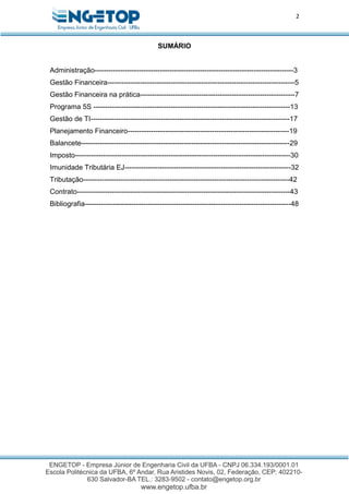 O documento discute conceitos e práticas de gestão financeira, incluindo a evolução histórica da gestão financeira, suas principais funções e ferramentas como balanço patrimonial, demonstração de resultados e fluxo de caixa. Também destaca a importância da análise financeira para tomada de decisões estratégicas que garantam a sustentabilidade dos negócios.