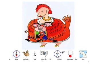 Este documento apresenta 19 diferentes tipos de mães animais, descrevendo brevemente os seus comportamentos maternos, como a galinha que guarda os filhos debaixo da asa, a formiga que só pensa no trabalho, e a borboleta que esvoaça exibindo sua beleza. No final, pergunta ao leitor como é sua própria mãe e o convida a desenhá-la.