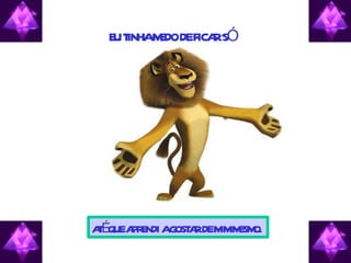 O documento descreve a jornada de uma pessoa que tinha medo de si mesma e do mundo até aprender a se amar e confiar em si. Através de experiências de fracasso, dor, perdas, rejeição e mudanças, a pessoa aprendeu a ter fé em si, a lidar com a verdade e o ódio dos outros, e a enfrentar os desafios da vida com coragem e confiança.