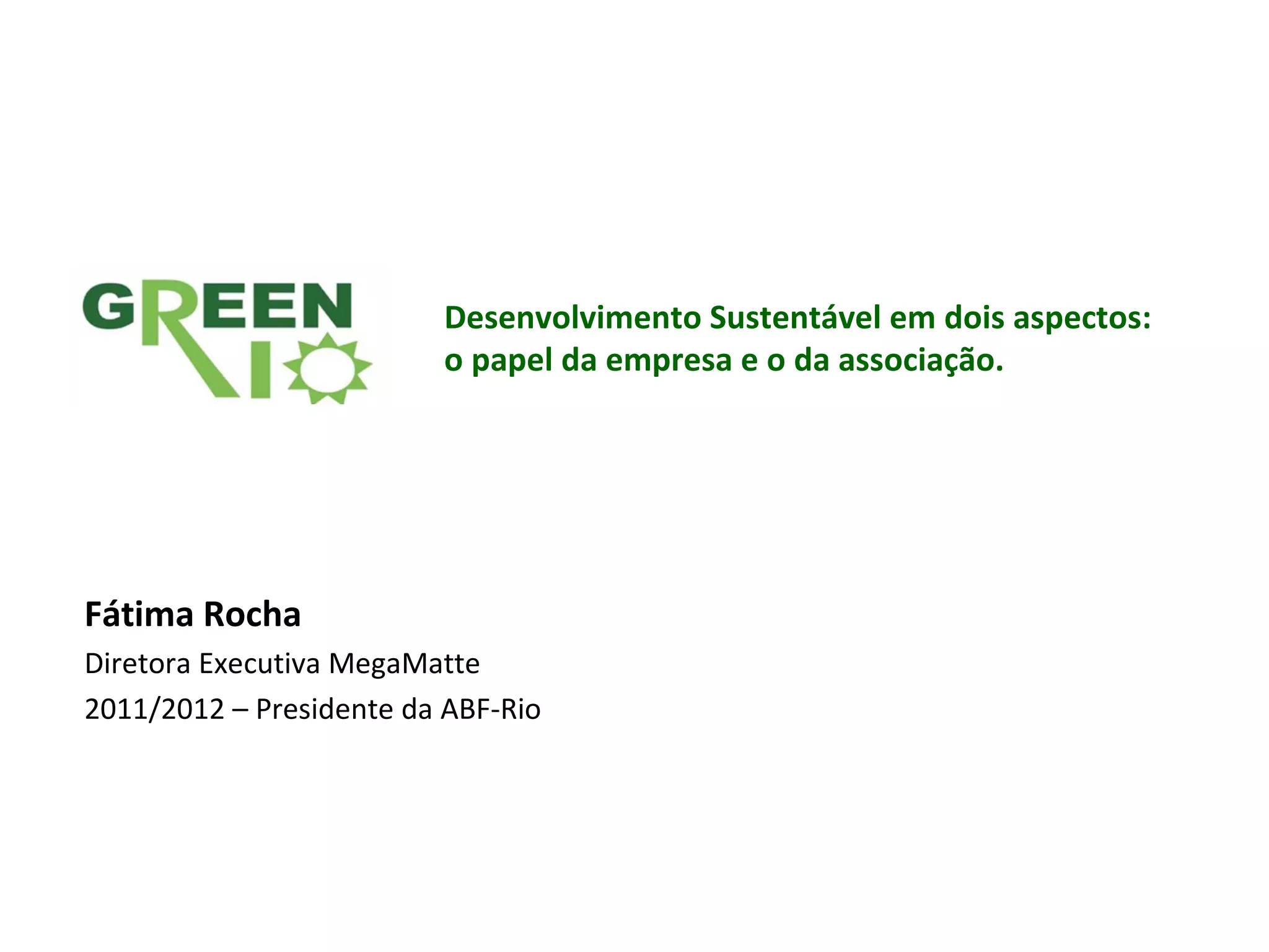 O documento discute o papel das empresas e associações no desenvolvimento sustentável, mencionando: