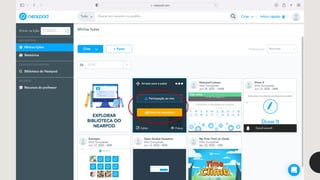Este documento fornece diretrizes para criar recursos educacionais digitais simples usando software livre. Ele discute técnicas de aprendizagem ativa como aprendizagem baseada em projetos e gamificação. Também recomenda vários aplicativos e sites para criar conteúdo interativo, histórias digitais, jogos educacionais e colaboração online.