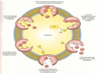 O documento resume as principais características e funções da membrana plasmática. A membrana é composta principalmente por lipídios e proteínas e delimita todas as células, separando o meio intracelular do extracelular. Sua principal função é funcionar como barreira seletiva e permeável entre esses meios, além de participar da comunicação e transdução de sinais entre células.