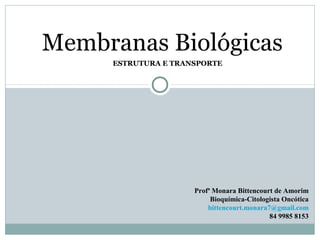 O documento discute a estrutura e função das membranas biológicas. Apresenta o modelo do mosaico fluido, que descreve as membranas como uma bicamada lipídica com proteínas inseridas. Também descreve os diferentes tipos de transporte através das membranas, incluindo transporte passivo e ativo, endocitose e exocitose.