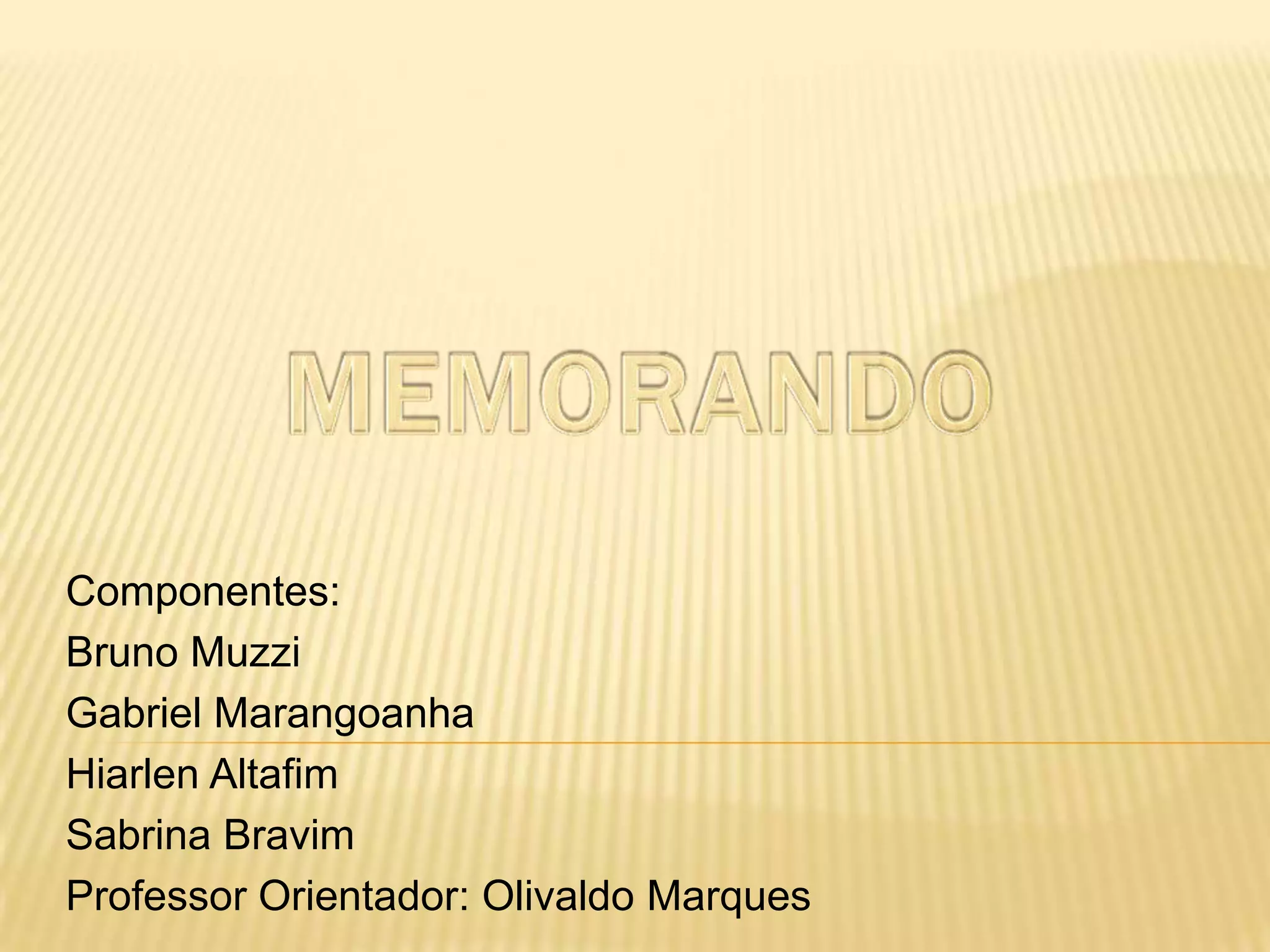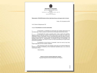 O documento descreve o que é um memorando, sua finalidade e estrutura. Um memorando é um aviso interno entre departamentos de uma organização para comunicar informações ou novas diretrizes. Sua estrutura inclui procedência, data, destinatário, assunto e texto assinado pelo emissor.