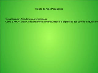 Este documento descreve as atividades de um programa de educação de jovens e adultos em Ciências. As atividades incluem: