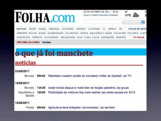 O documento discute o conceito de memória no jornalismo digital, especificamente a disponibilização online de arquivos de notícias e a possibilidade de novas configurações e tematizações a partir de bases de dados. Também aborda temas como palavras-chave, data mining e folksonomia.