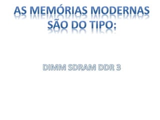 A memória RAM é onde os dados e programas em uso são temporariamente armazenados no computador. Existem dois tipos principais de memória RAM: estática e dinâmica. A memória RAM evoluiu ao longo dos anos em termos de tecnologia, capacidade e padrões de encapsulamento.