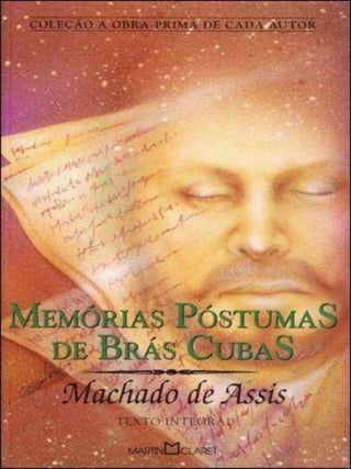 O documento narra as memórias de Brás Cubas, um defunto autor que reflete sobre sua vida e família desde seu nascimento até a morte. Ele relata suas experiências, amores, e desilusões, incluindo o relacionamento com Marcela e Virgília, além de outros aspectos marcantes de sua trajetória. No final, Brás analisa sua vida sem filhos e sem realizações, revelando um sentimento ambíguo sobre sua existência.