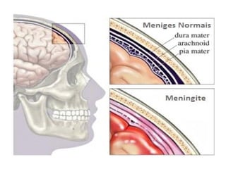 1) O documento discute aneurisma cerebral e meningite, incluindo suas definições, causas, sintomas e tratamentos.