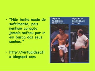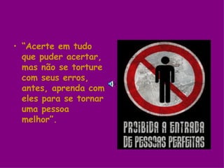 O documento contém 5 frases curtas encorajando as pessoas a não terem medo de sofrer em busca dos seus sonhos, aprenderem com os erros para melhorar, e colherem o que plantarem.