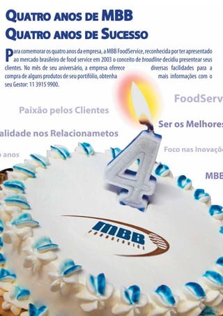 1) Uma receita de salmão recheado com camarões como sugestão de prato para o mês. 2) Informações sobre a qualidade e propriedades nutricionais dos pescados. 3) Detalhes sobre eventos a serem realizados pela MBB FoodService, como workshops e cozinha experimental.