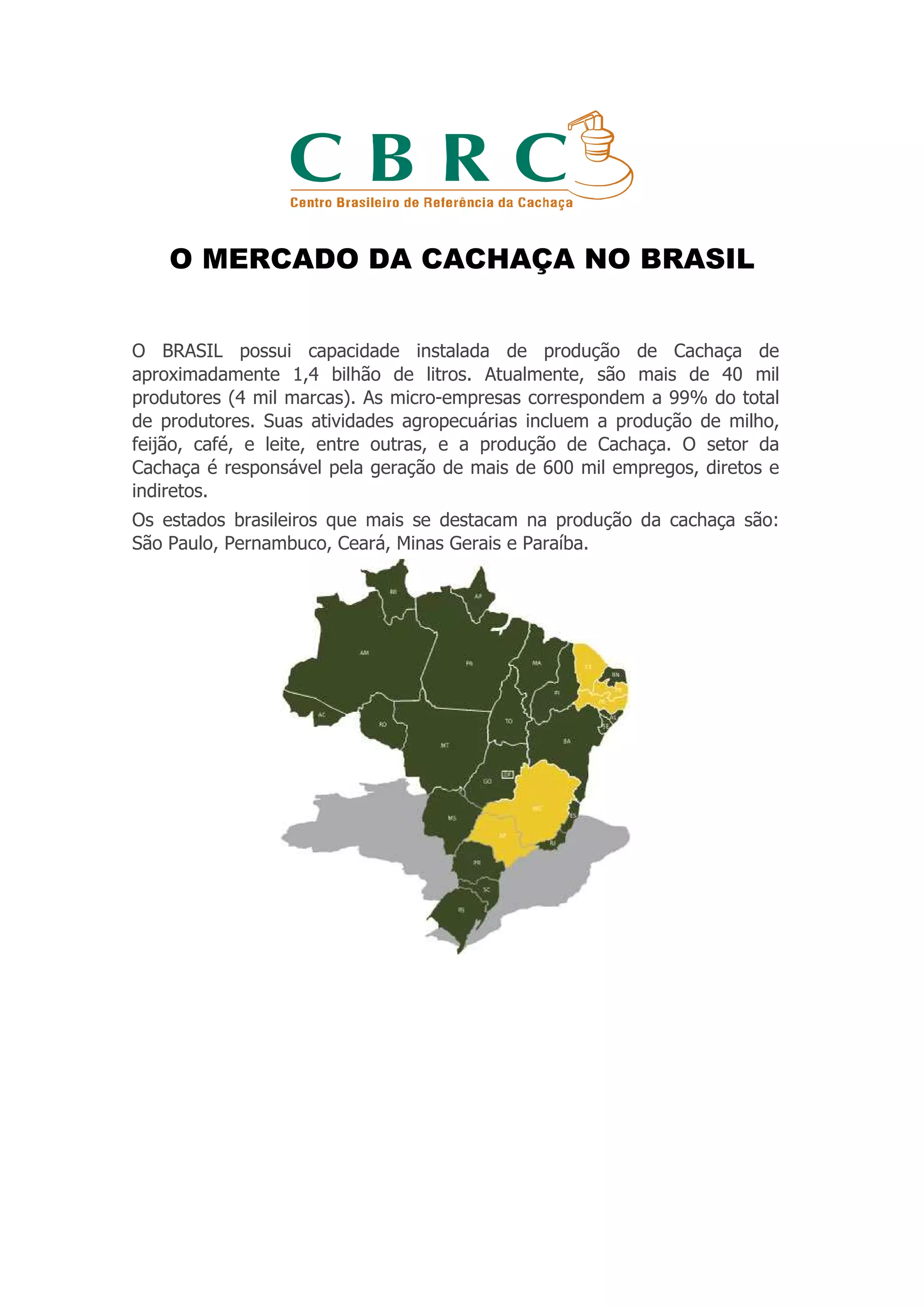2) A indústria da cachaça gera mais de 600 mil empregos no Brasil e os estados líderes de produção são São Paulo, Pernambuco, Minas Gerais, Ceará e Paraíba.