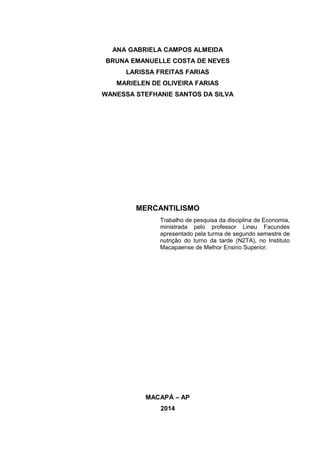 Este documento apresenta um resumo sobre o período histórico do mercantilismo na Europa entre os séculos XV e XVIII. Ele descreve as principais características desta política econômica como a acumulação de metais preciosos, balança comercial favorável e protecionismo alfandegário. O documento também discute como diferentes países europeus adotaram versões do mercantilismo de acordo com suas peculiaridades, como o bulionismo na Espanha e o colbertismo na França.
