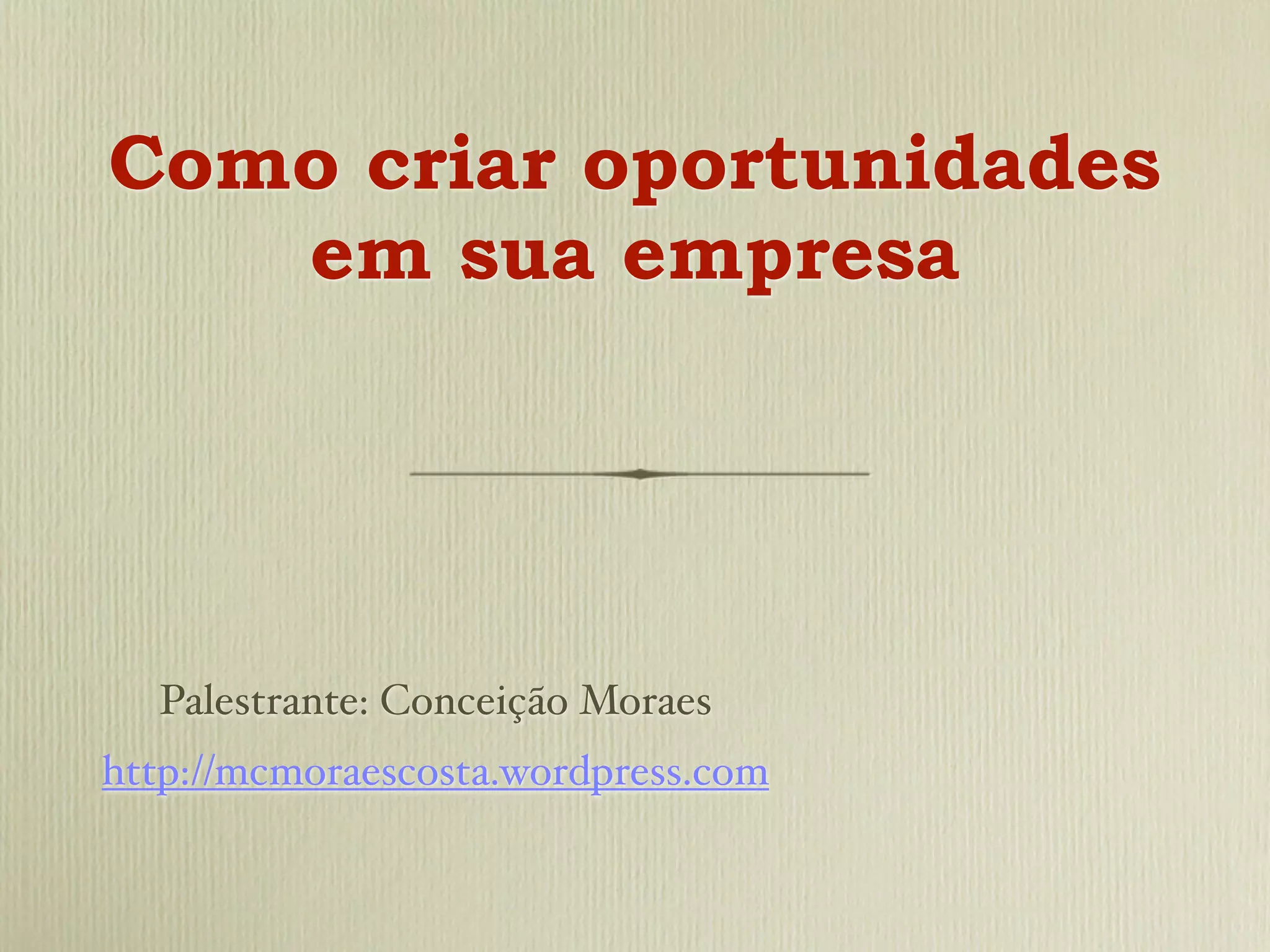 O documento discute estratégias de merchandising para criar oportunidades em empresas, incluindo melhorar a exposição de produtos, organização da loja, vitrines atraentes, iluminação adequada, aproveitamento de temporadas e promoções para atrair clientes e aumentar vendas.