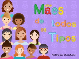 O documento explora a diversidade de mães, descrevendo diferentes tipos, personalidades e comportamentos, desde mães desligadas até mães engraçadas e corajosas. Apesar das variações, todas compartilham um amor imenso e especial por seus filhos. A autora também menciona seu agradecimento a sites que fornecem imagens para ilustrar suas obras.