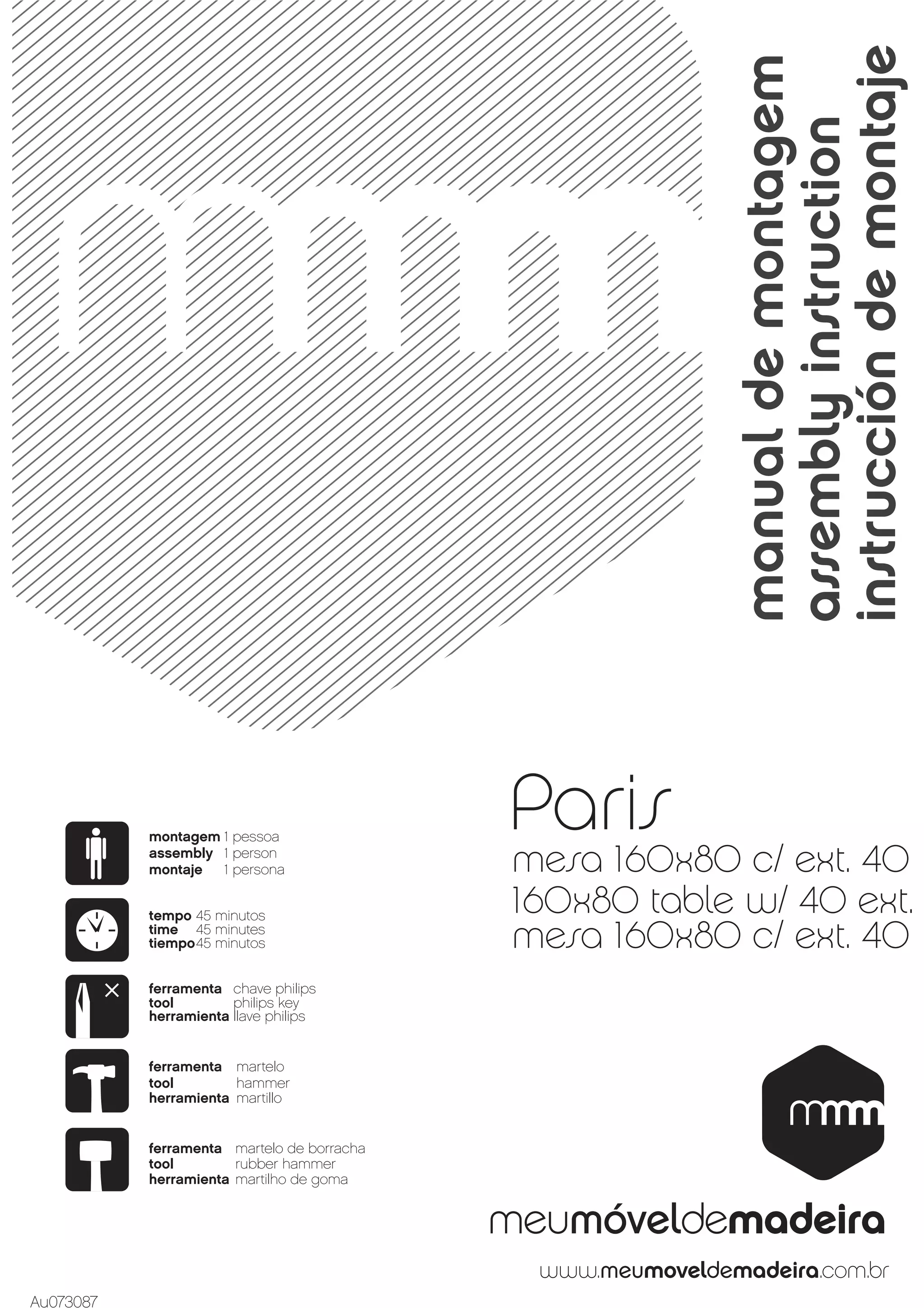 1) Instruções para montagem de mesa de 160x80cm com extensão de 40cm por uma pessoa em 45 minutos.