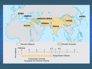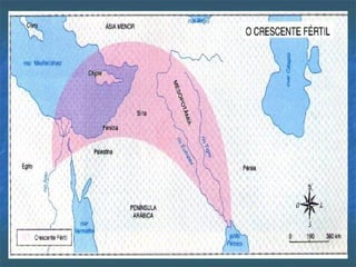 1) A região do Crescente Fértil no Oriente Médio foi berço de antigas civilizações, localizada entre os rios Tigre e Eufrates.