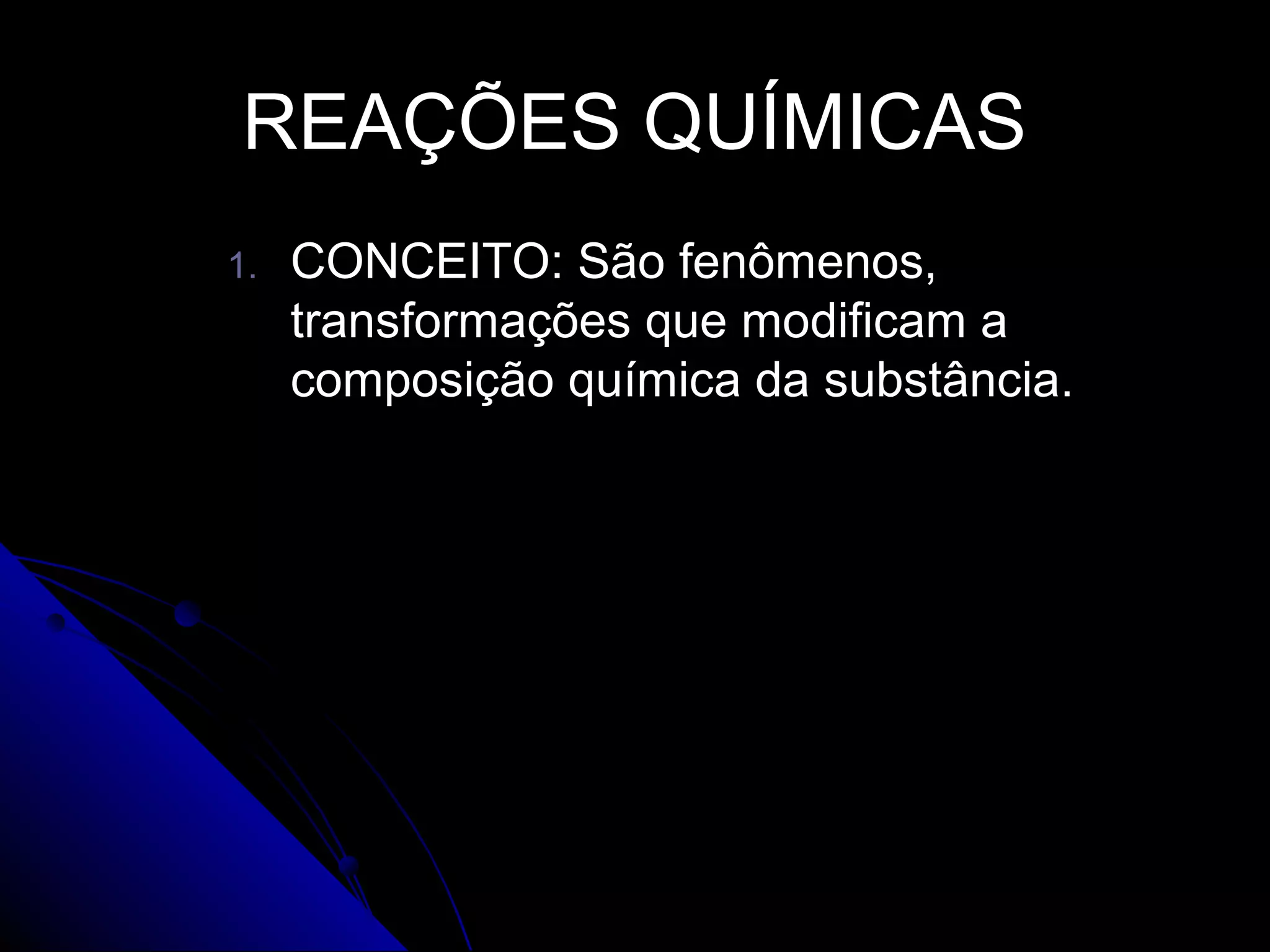 O documento discute conceitos de reações químicas, incluindo representação simbólica de equações químicas, balanceamento de equações, classificação de reações baseadas em liberação de calor e mecanismo, fatores que influenciam reações, e exemplos de reações de deslocamento e dupla troca.