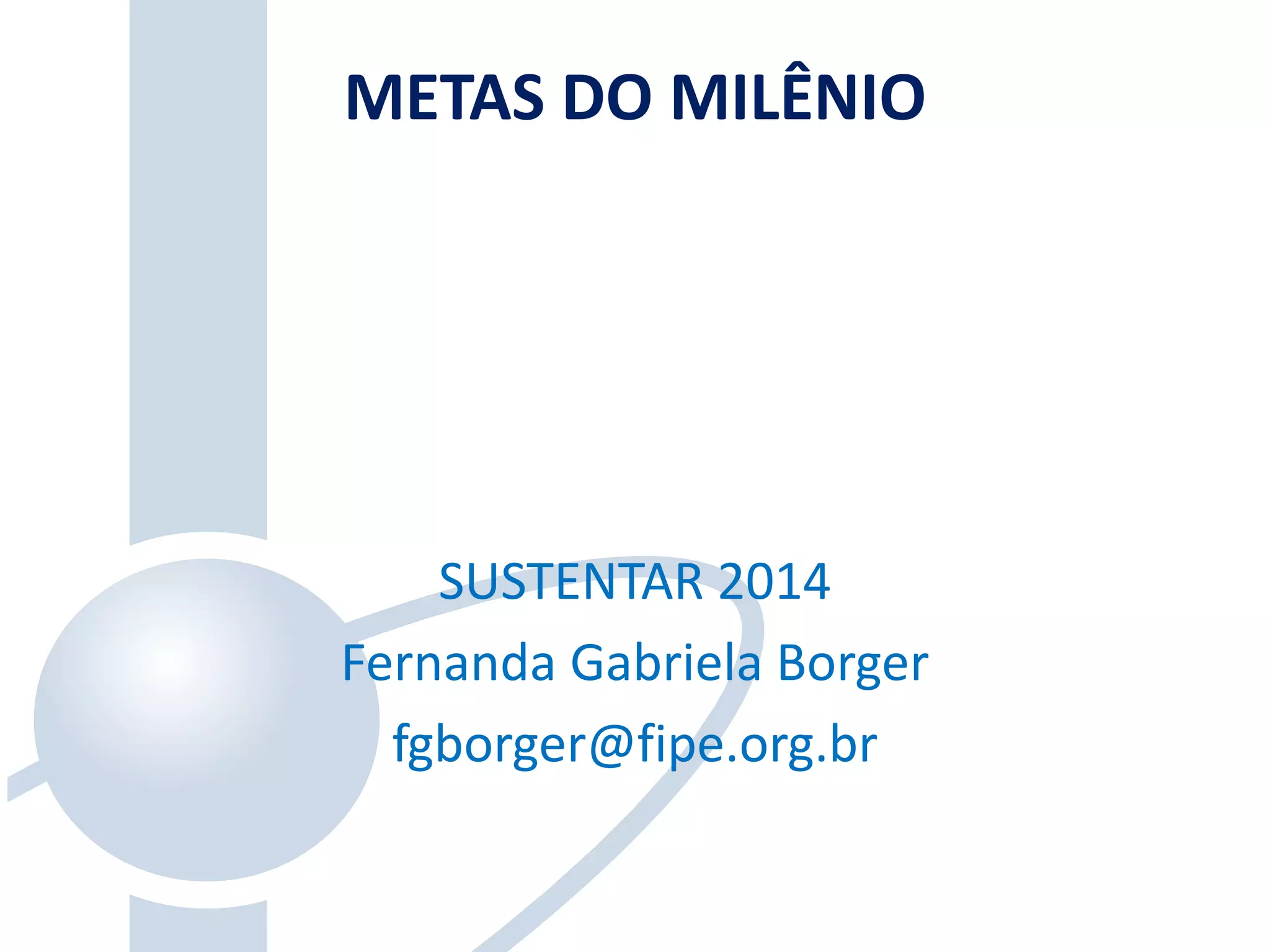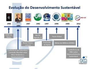 O documento discute os Objetivos de Desenvolvimento do Milênio e propõe os Objetivos de Desenvolvimento Sustentável como uma nova agenda para depois de 2015. Apresenta indicadores para medir o progresso ambiental e social de países, como o Índice de Desempenho Ambiental de Yale e o Genuine Progress Indicator.
