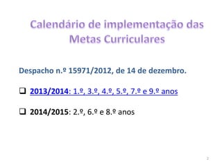 O documento aborda a articulação curricular em educação, detalhando as metas e conteúdos fundamentais a serem ensinados em diferentes anos de escolaridade. Enfatiza a importância da gramática na educação e estabelece objetivos e descritores de desempenho que devem ser obrigatórios ao longo do ensino. Inclui também listas de obras e textos para a iniciação à educação literária nos vários anos escolares.