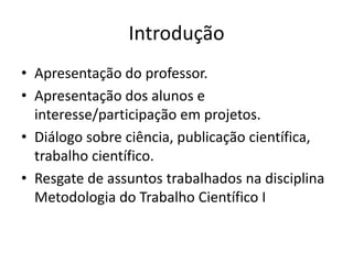 O documento discute a produção científica da enfermagem brasileira e estratégias para aumentar seu impacto internacional, como melhorar a formação de recursos humanos, incentivar a pesquisa e publicar em revistas indexadas. Ele analisa o ranking do Brasil em produção científica e lista as principais revistas de enfermagem indexadas no ISI, com seus respectivos fatores de impacto.