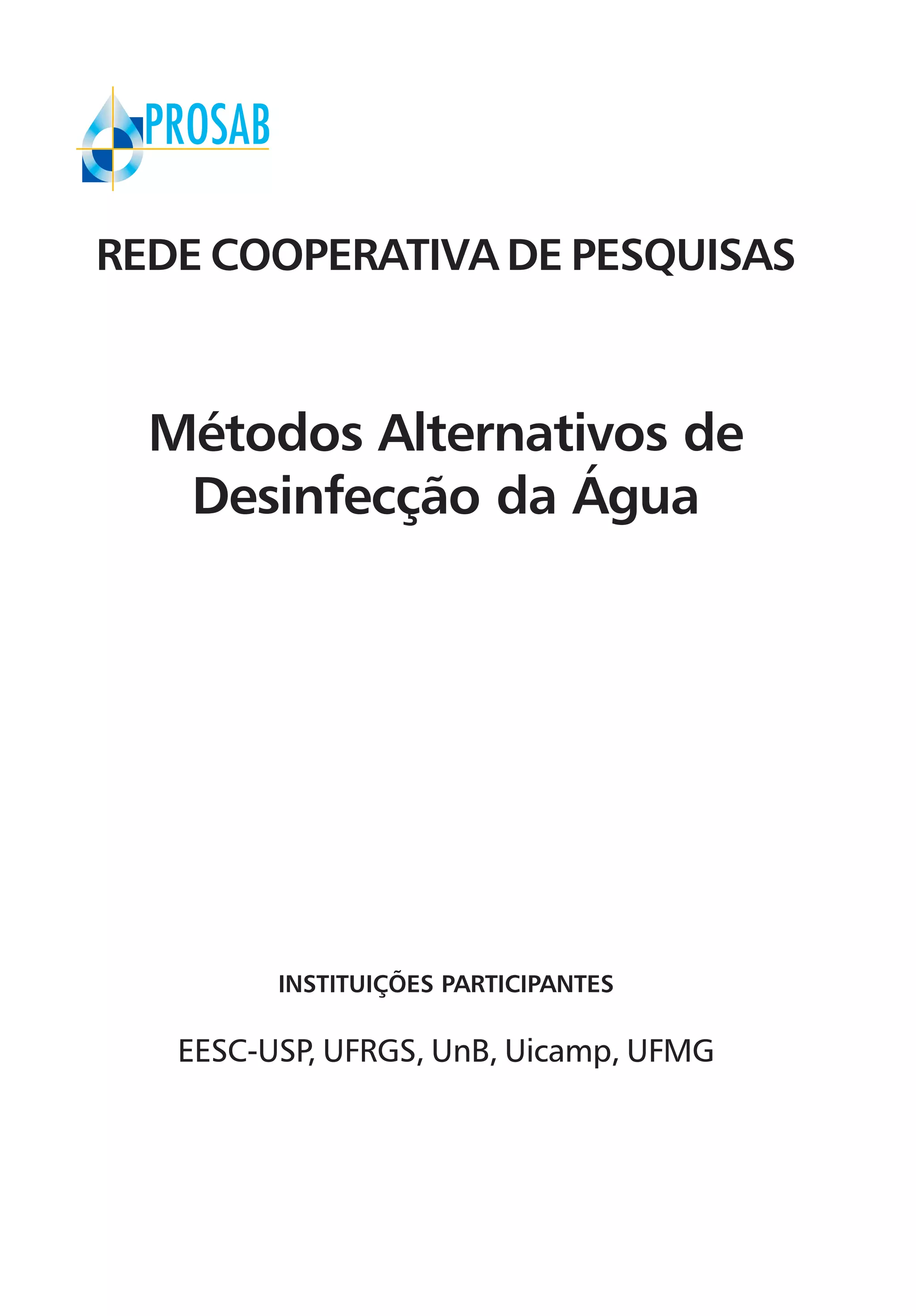 Este documento apresenta um resumo do capítulo 1 de um livro sobre métodos alternativos de desinfecção da água. O capítulo discute as principais doenças veiculadas pela água, fontes de contaminação e mecanismos de controle, resistência de microrganismos patogênicos e fatores que afetam a desinfecção. Também apresenta microrganismos indicadores da qualidade da água.