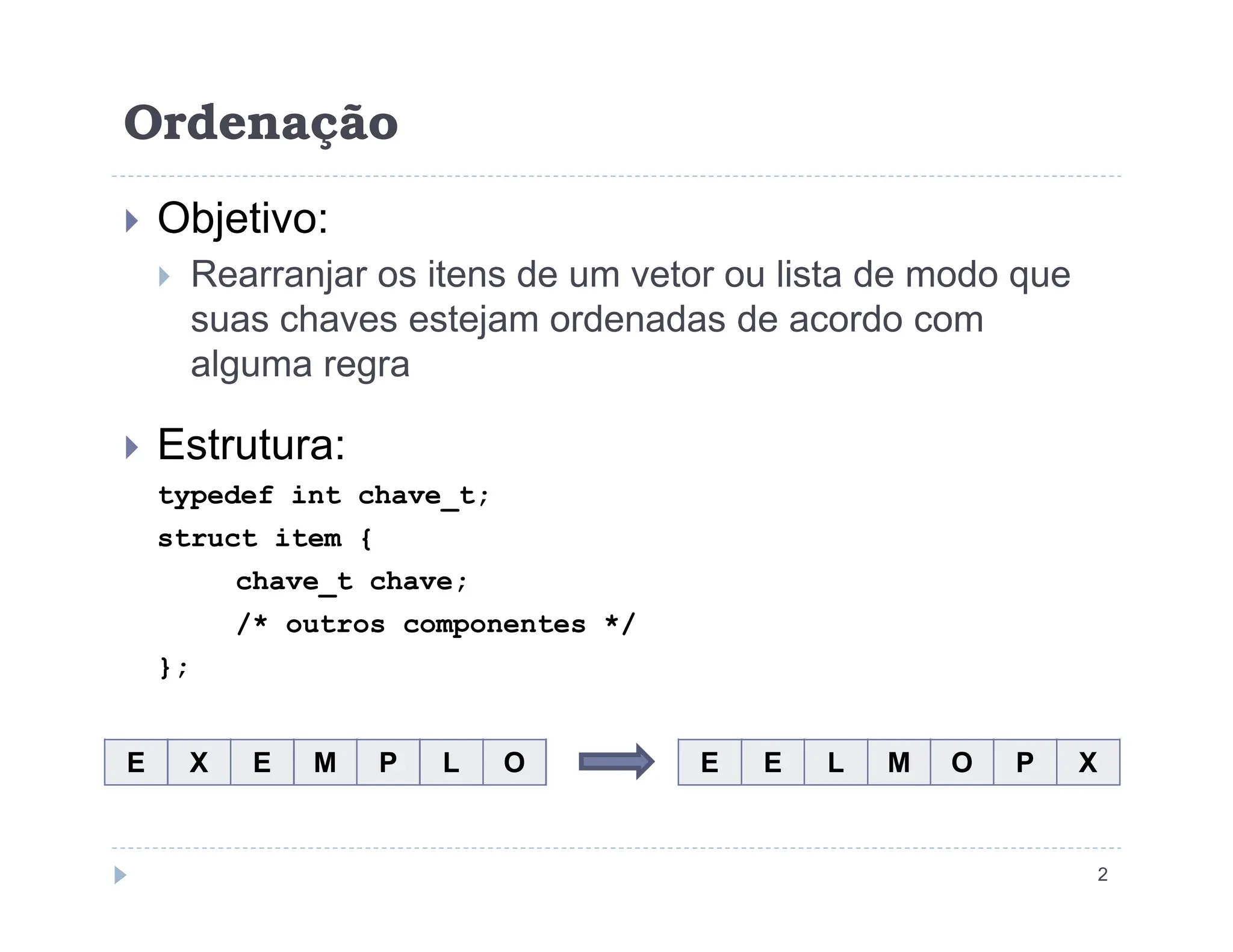 O documento detalha métodos de ordenação, incluindo seleção, inserção e bolha, abordando suas estruturas, complexidades e critérios de avaliação como estabilidade e adaptabilidade. Cada algoritmo é analisado em termos de vantagem e desvantagem, além de discutir como funcionam na prática com exemplos de implementação. A variedade de algoritmos destaca a importância da escolha adequada em relação ao tipo de dados e ao contexto de uso.