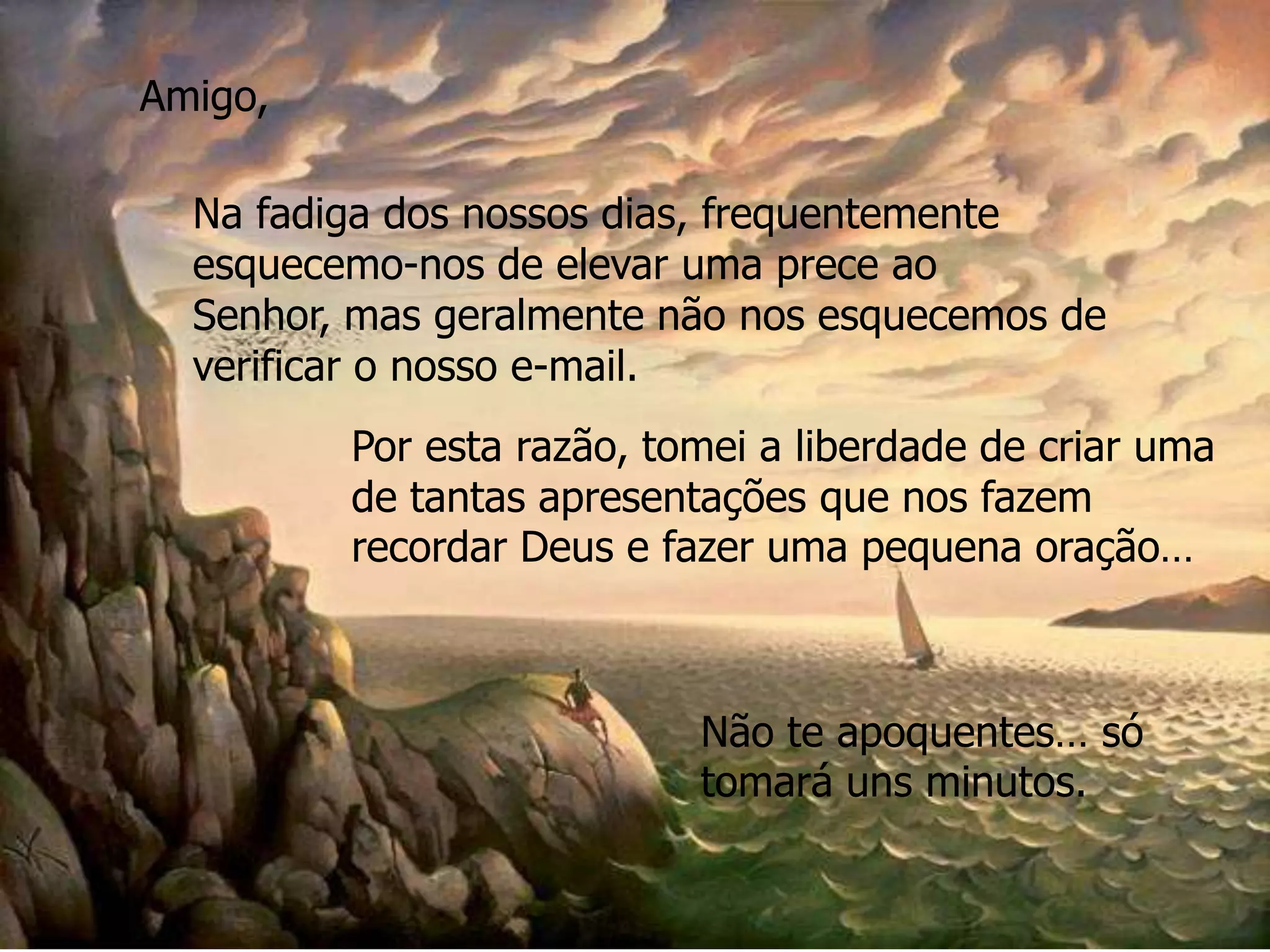 O documento é uma oração que pede a Deus por sabedoria e força para lidar com o sucesso e o fracasso, julgar a si mesmo e aos outros com compaixão, perdoar os que causam dano, e se lembrar de Deus mesmo nos momentos de esquecimento. A oração é atribuída a Mahatma Gandhi e convida o leitor a compartilhá-la.