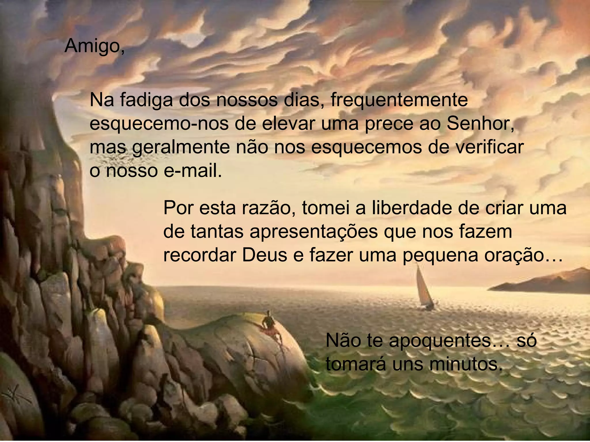 O documento é uma oração que pede a Deus por sabedoria e força para lidar com os desafios da vida, como dinheiro, sucesso, saúde, fracassos e perdões. A oração pede também para não se esquecer de Deus mesmo nos momentos de alegria e para julgar a si mesmo da mesma forma que julga os outros.