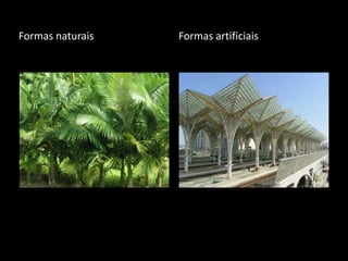 As formas naturais inspiram o ser humano e existem diferenças entre formas naturais e artificiais.