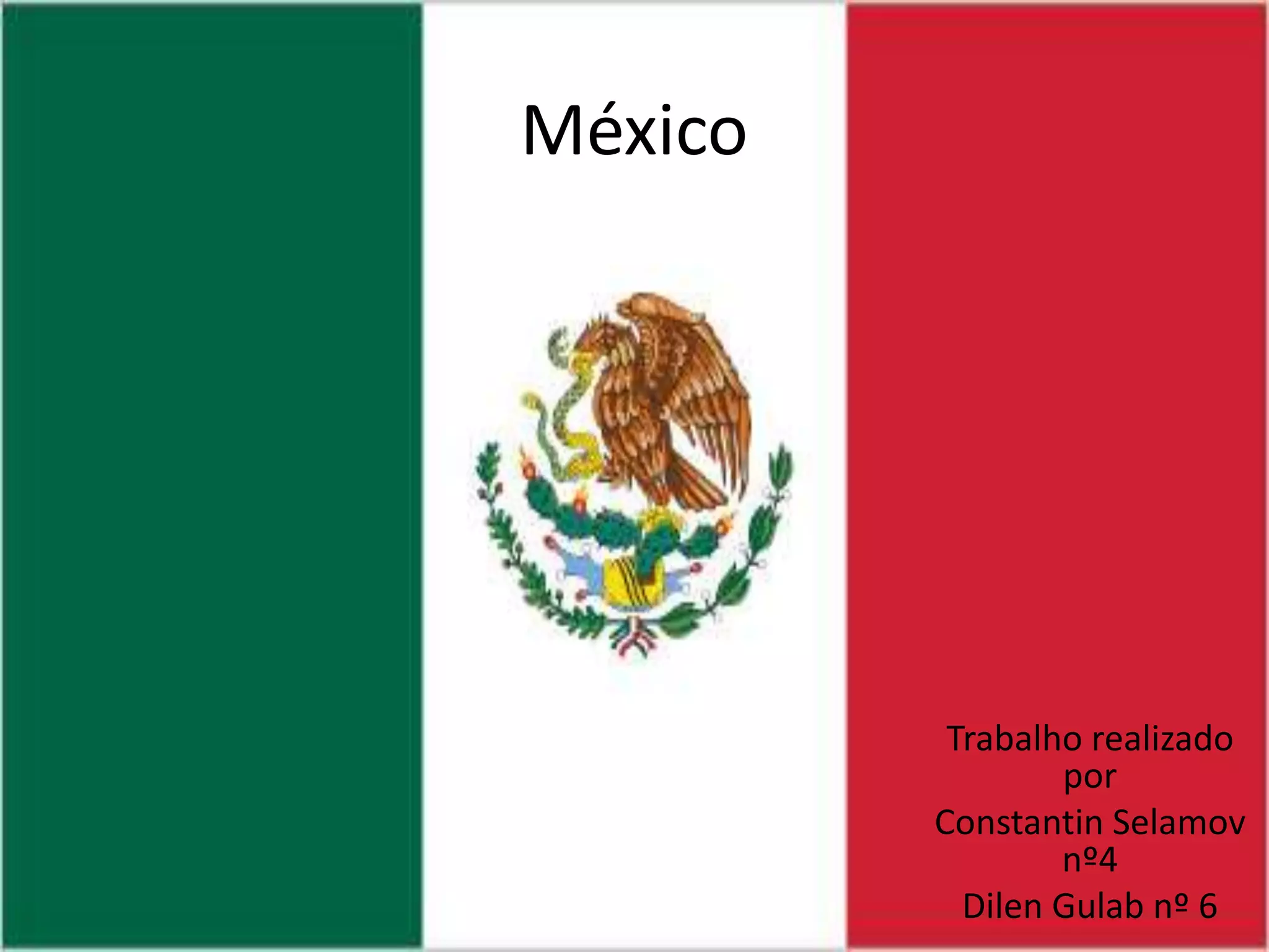 O documento oferece informações sobre o México, incluindo dados demográficos, como uma população de 118.395.054 habitantes e uma área de 1.972.547 km². Também menciona o índice de desenvolvimento humano de 0,756 e destaca aspectos culturais, como pratos típicos e monumentos, incluindo Chichén Itzá.