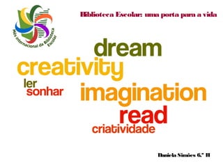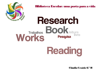O documento apresenta uma coletânea de textos de diferentes autores sobre a importância da biblioteca escolar. Cada autor, pertencente à mesma turma, explora como as bibliotecas servem como uma porta para oportunidades e aprendizado. A obra destaca a relevância das bibliotecas na formação de estudantes e na promoção da leitura.