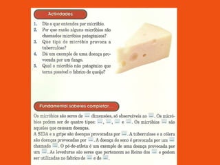 Micróbios podem ser classificados em quatro grupos: vírus, bactérias, protozoários e fungos. Bactérias podem ser classificadas de acordo com sua forma em cocos, bacilos, espirilos ou víbrios. Alguns micróbios como bactérias lácticas e leveduras são úteis, enquanto outros como Neisseria meningitidis podem causar doenças ao homem.