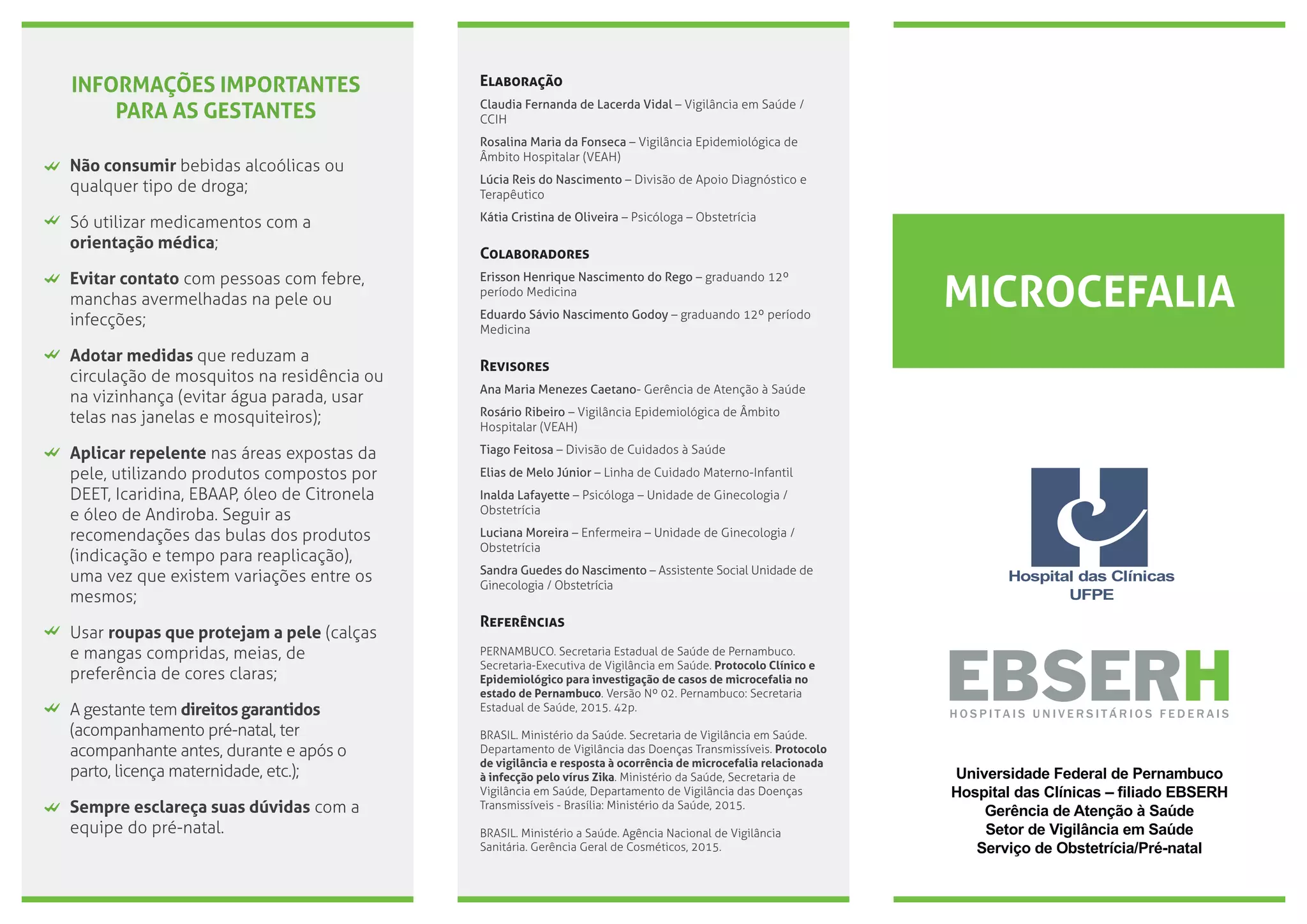 O documento fornece informações sobre microcefalia, incluindo suas causas, como infecções durante a gravidez. Ele descreve os procedimentos a serem tomados se uma gestante apresentar sintomas como manchas na pele ou se for diagnosticada microcefalia no feto. Recomenda exames adicionais nesses casos para investigação.
