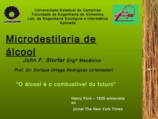 O documento discute a viabilidade de microdestilarias sustentáveis de produção de etanol a partir da cana-de-açúcar. A análise emergética mostra que sistemas de pequena escala, como as microdestilarias estudadas, tem menor impacto ambiental do que grandes usinas e podem ser economicamente viáveis quando integradas à agricultura e pecuária sustentáveis.
