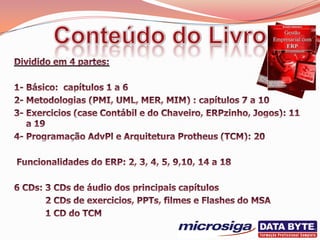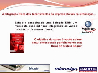 O documento descreve um sistema integrado de gestão automática que permite a integração plena dos departamentos de uma empresa através do compartilhamento de informações. O sistema permite a gestão de processos como compras, estoque, produção, vendas, financeiro e recursos humanos de forma integrada.