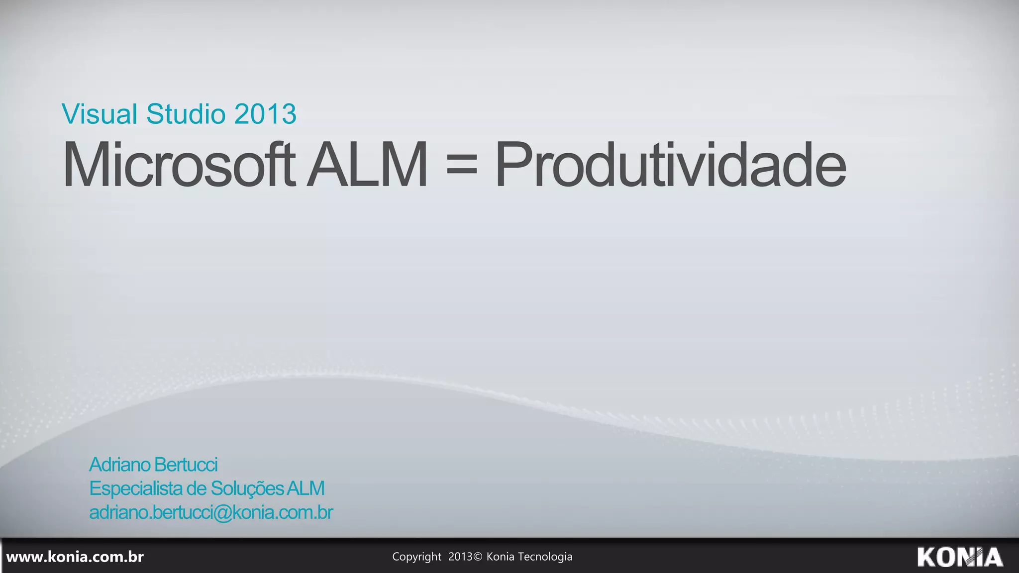 O documento discute os desafios comuns em projetos de software, como requisitos não gerenciados efetivamente e falta de comunicação entre membros da equipe. A solução proposta é o uso do ALM (Application Lifecycle Management) para melhorar a produtividade através de ferramentas como gerenciamento de defeitos, controle de versão e automação de testes. O documento também apresenta o Visual Studio 2013 e o Team Foundation Server como plataformas ALM capazes de integrar todos os membros da equipe e melhorar a visibilidade do status do projeto.