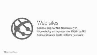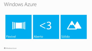 O documento apresenta a programação de um evento que inclui palestras sobre Microsoft Azure e aplicativos associados. As sessões cobrem tópicos diversos, desde vídeos e máquinas virtuais até serviços móveis e detalhes da plataforma de nuvem pública. O evento inclui um intervalo para almoço e abrange a utilização prática de instâncias e servidores.