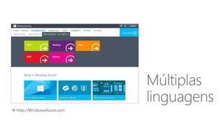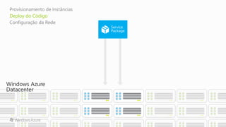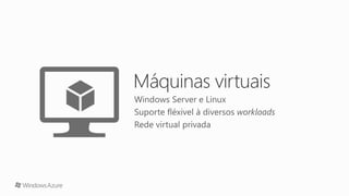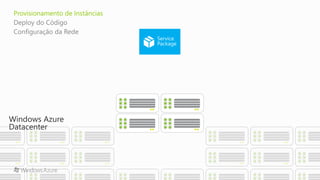 O documento apresenta a programação de um evento que inclui palestras sobre Microsoft Azure e aplicativos associados. As sessões cobrem tópicos diversos, desde vídeos e máquinas virtuais até serviços móveis e detalhes da plataforma de nuvem pública. O evento inclui um intervalo para almoço e abrange a utilização prática de instâncias e servidores.