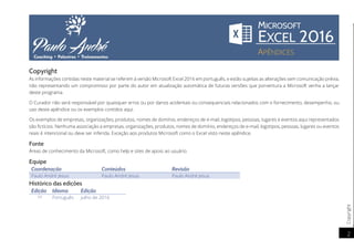 2) Inclui também atalhos de teclado comuns no Excel 2016 e informações sobre como navegar na faixa de opções usando teclas de acesso.