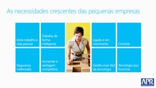 O Windows 8 Pro é projetado para pequenas empresas, oferecendo um ambiente de trabalho familiar e compatível com diversos dispositivos, incluindo tablets e notebooks. Ele proporciona segurança avançada e facilidade de gerenciamento da tecnologia, além de melhorias significativas em desempenho e durabilidade da bateria em comparação com versões anteriores como Windows XP e Windows 7. Os usuários podem escolher entre várias maneiras de adquirir o software, garantindo uma experiência personalizada e produtiva.